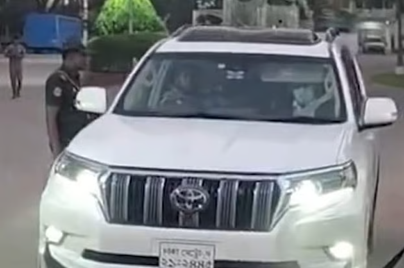 জামিনে মুক্তির পর গাড়িতে করে কারাগার থেকে বের হয়ে যাচ্ছেন সাবেক স্পিকার শিরীন শারমিন চৌধুরী। আজ রোববার সন্ধ্যায় গাজীপুরের কাশিমপুর কেন্দ্রীয় কারাগারের ফটকেছবি: প্রথম আলো